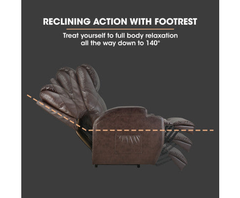 Experience superior comfort with soft and easy to clean faux leather and high resilience foam cushioning providing generously padded arms, seat and back. With a high-tensile metal frame and reclining mechanism this lift chair can withstand up to 136kg.