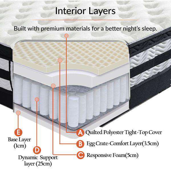• 5-Zone Pocket Spring Mattress: Provides tailored support for the head, shoulders, hips, knees, and feet.