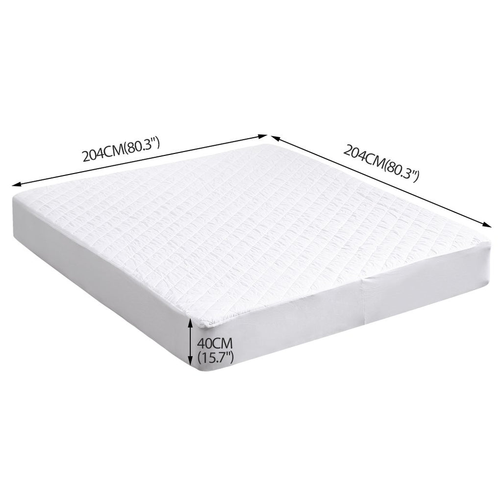 To keep our protectors cool and noiseless, the surface material is made with soft brushed microfiber back coated with a breathable, hypoallergenic and waterproof layer protection. Constructed with beautiful quilted diamond pattern design, walls between top and bottom layers prevent down alternative filling from clumping and shifting and assures that it remains evenly distributed below you cushioning your pressure points while you slowly drift off into a heavenly sleep. Protects against allergens, dust mites, bacteria, perspiration, urine and fluids.