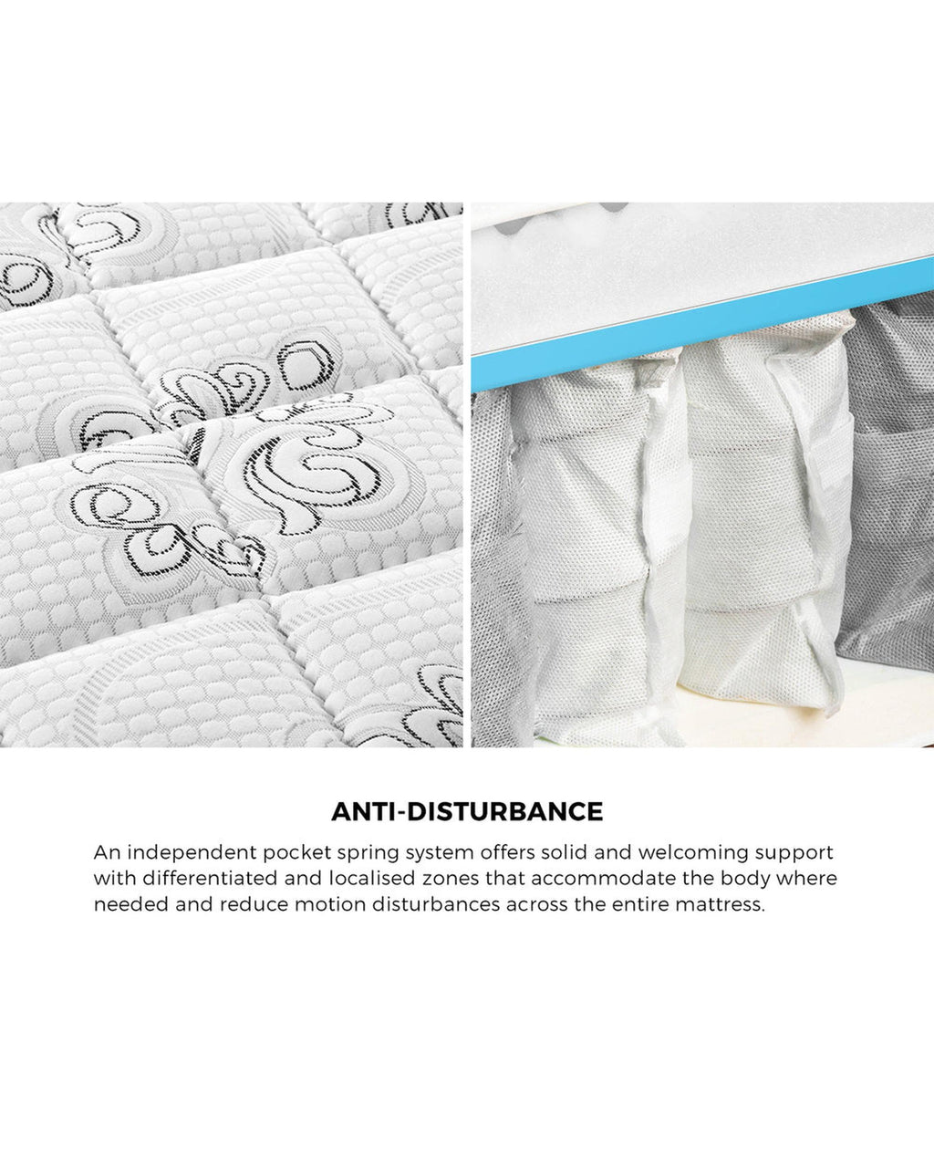 Featuring an 6-layer construction that comprises the benefits of an independent pocket spring system and matched with a host of other desirable mattress technologies, the Bedra Bedding pocket spring mattress ensures superior sleep with optimum spinal adjustment, localised zonal support and many wonderful hours of uninterrupted sleep with minimal motion transfer disturbance. Inside the mattress, a precisely calibrated pocket spring system working in tandem with impact-absorbing sponge foam, high-resilient foam and wear-resistance cotton felt deliver the right balance of firmness and softness. And you can surely appreciate why the firm mattress is a delight to rest on as it shapes itself to contour the natural curves of your body perfectly. Back, side or stomach sleeper, the Bedra Bedding mattress has you zeroed in for unrivalled personalised comfort. Better still, with a premium non-woven knitted fabric finish, the Bedra Bedding mattress is soft to the touch, and represents a sensory delight that lends a rich elegance to this long-lasting investment.