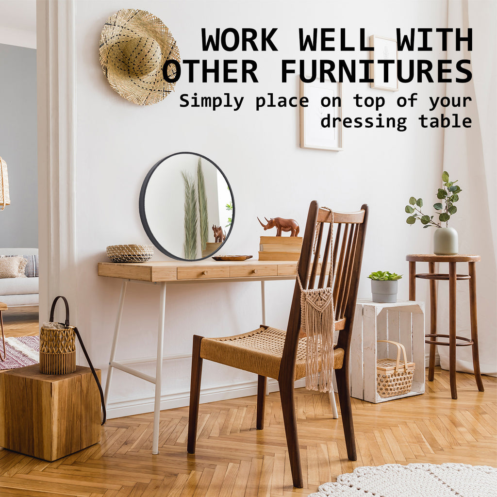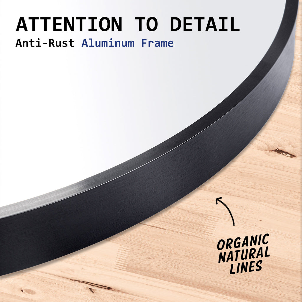 The round mirror is modern and clean in design comes with a 3.9cm thickness minimalistic aluminium frame that is sure to capture the attention of all. Plus, its curved lines all rounds will become a central focal point in any room which makes spaces feel more inviting and relaxing.