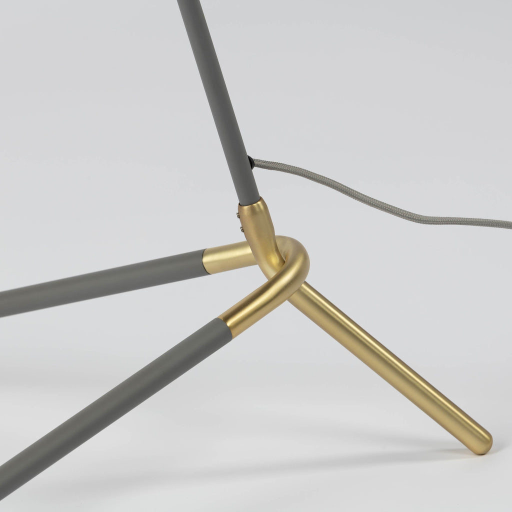 Description: Dark Gold & Satin Grey Floor Lamp, Perfectly suited to a luxe bedroom or living space.