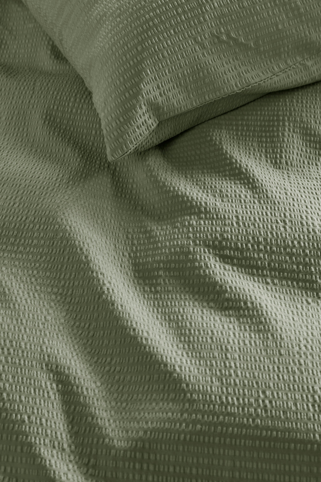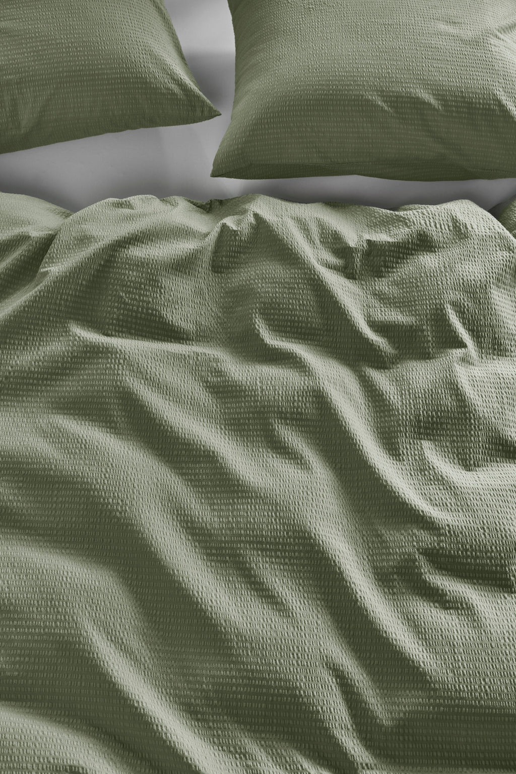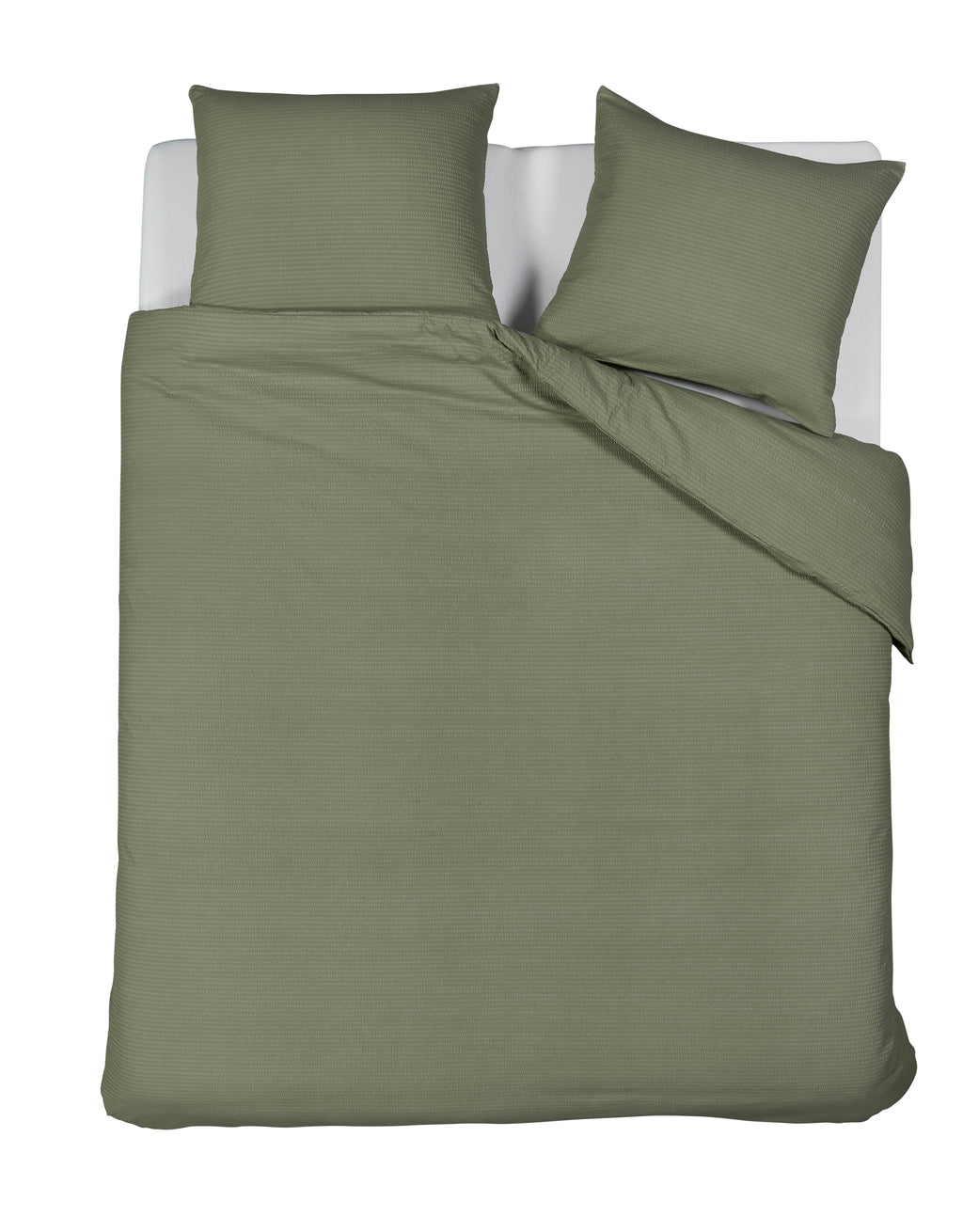 Are you looking for a nice basic quilt cover for your bedroom? Then the Summer quilt cover from Beddinghouse. A simple design, but a beautiful look. Summer is made in an olive-green Seersucker fabric, a thin wrinkled fabric. The fabric is loosely woven with a very fine yarn. The fabric is light and breathable and due to its strong moisture absorbing and good ventilating ability, the quilt cover provides a pleasant feeling. Also, the comforter cover feels wonderfully soft and supple around the body.