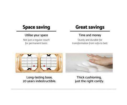 This 3-seater sofa bed is made to last with a sturdy construction that can support up to 200kg in weight. Chrome steel legs add a touch of class and finesse to the sofa while the thick cushioning also makes it extremely comfortable to sit and lie on. The Velcro-attached armrest cushions double up easily as pillows or support. Not least, with three adjustable backrest positions, you can select your preferred setting to sleep, read, watch TV or simply chill out with your mobile device or laptop.