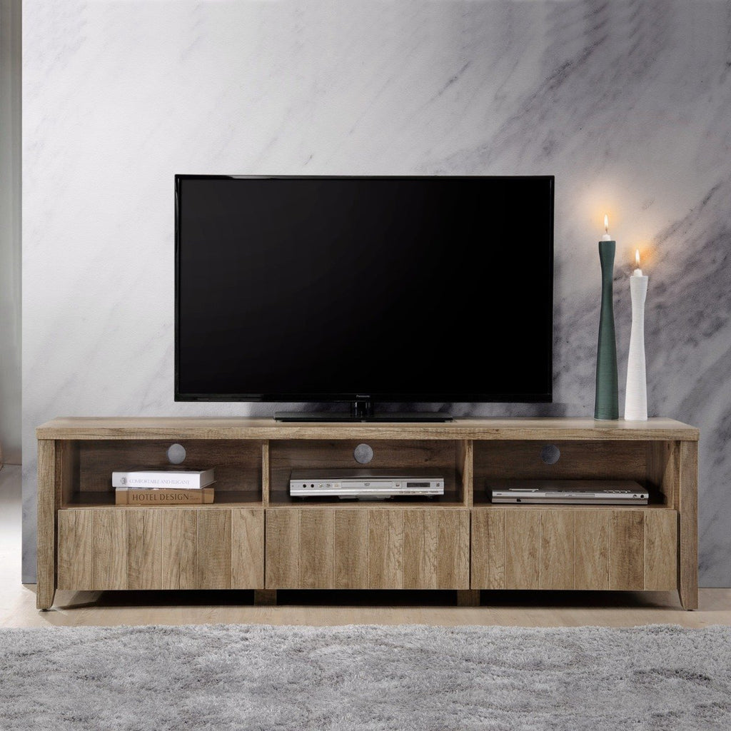 The entertainment unit comes with two drawers for stowing your accessories along with your entertainment consoles. Besides the drawers, it also has storage shelves. Spacious yet discreet design accommodates both LCD and Plasma screens and most AV equipment, including set-top box, DVD/Blu-ray player, games consoles, DVDs, CDs etc. You can also use the shelves as display corners to enhance the look of your living room.