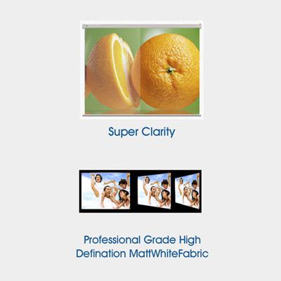 Premium construction begins with a professional-grade, precision-matte fabric for superior image reproduction, regardless of viewing angle. A bright white gain for a bright, clear picture, along with a black edge to diminish unwanted visual noise. The result is "window-like" crystal clarity and exceptional detail that you will have to see to believe. The screen is designed for both the classic 4:3 aspect ratio as well as the 16:9 high-definition (widescreen) aspect ratio.