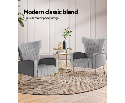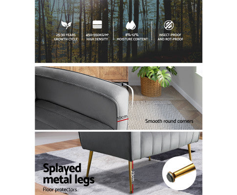 Artiss Kate armchair offers a wide, high-back, and welcoming seat with comfortable armrests for you to relax. It is ideal for every corner of your space where you want to add soft and comfy touches. Crafted with great attention to details, this armchair feature solid wood construction with high resilience foam. It is quite sturdy and will withstand the test of time. Our Kate armchair is upholstered in soft velvet fabric that epitomises luxury with its smooth and shiny appearance and adds a cosy and relaxing feel to your space. Plus, the splayed golden metal legs with floor protectors will offer optimum stability and protection to your floors and add a luxurious charm to your space with its gorgeous presence.