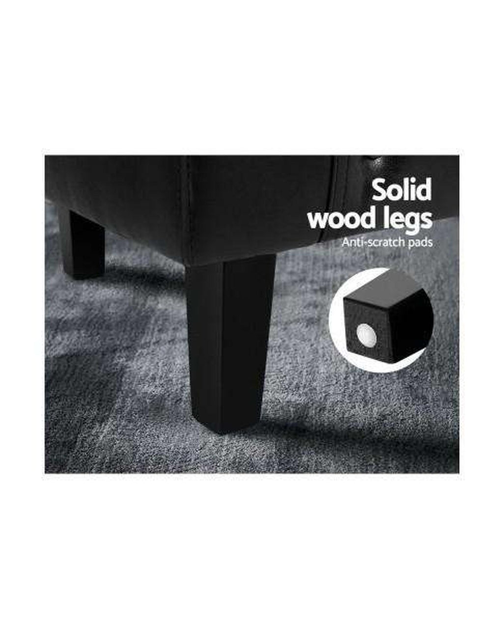An iconic design that will stand the test of time and taste. The Ava Armchair and Ottoman is the perfect ensemble to incorporate some grandeur to your home. With its meticulous craftsmanship, the armchair is upholstered in premium PU leather with rich high-resilience foam padding for comfort. The barrel back wraps around and hugs your body to provide perfect support and comfort. The tufted design also adds some extra elegance. And the matching ottoman shares similar attributes. Not least, the solid rubber wood legs provide excellent support and the anti-scratch feet protect your pristine floors from damage. Form and function never looked better than with our Chesterfield-inspired armchair and ottoman.