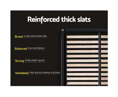 Within the frame, a highly flexible wooden arched slat base allows the bed to flex properly so that a person who lies on the bed can move around without unduly disturbing the other. An adjustable centre support beam keeps the bed steady and provides additional central support to the structure.