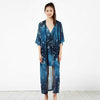 A lightweight Kimono robe with a floral design in white and aqua on a deep teal base. Made from 100% viscose it feels silky soft against the skin, and comes with a tie in the same fabric. Designed and made by Spanish Fashion brand Desigual.