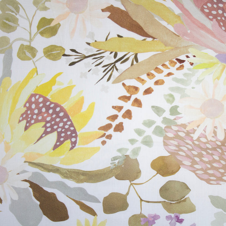 Inspired by the striking foliage of our unique Australian flora, the Makea Quilt Cover design was hand painted, then digitally printed onto quality cotton percale fabric. The design is a reversible with a smaller scale floral print on the reverse, so it can be easily flipped over to create a fresh new look.