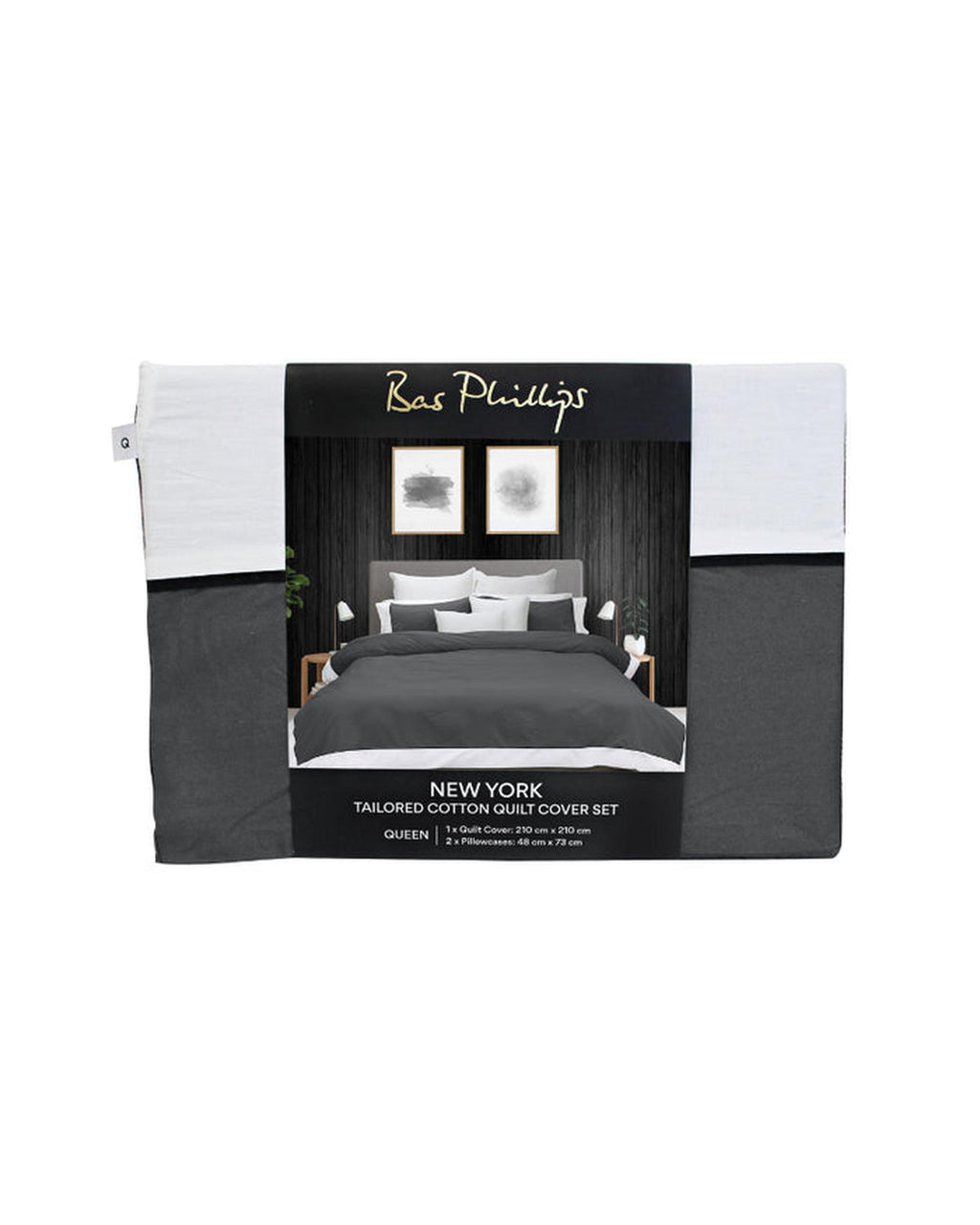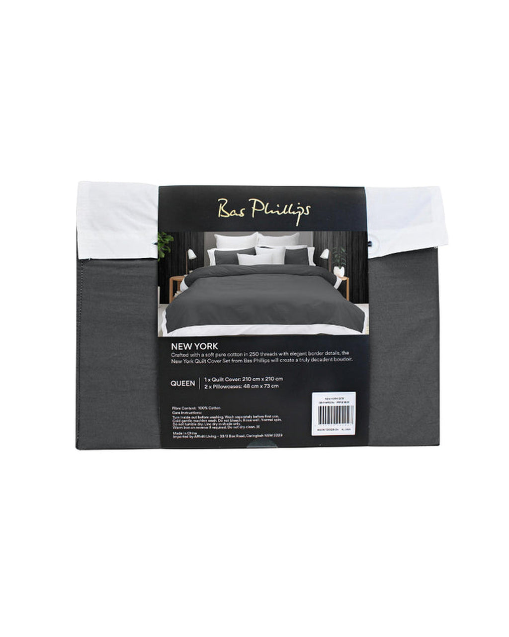Tailored for individuals with discerning taste and a penchant for the finer things in life, the Bas Phillips New York Charcoal and White Quilt Cover Set is ideal for those who prioritize luxurious comfort and wish to make a bold statement in their bedroom. Whether you're seeking to upgrade your bedding or create a welcoming, stylish haven, this set is the perfect choice. Simply slip the New York Quilt Cover Set over your quilt to instantly elevate your space. Pair it with matching or contrasting bedding accessories to achieve your desired aesthetic. Transform your bedroom into a luxurious oasis with the Bas Phillips New York Charcoal and White Quilt Cover Set.