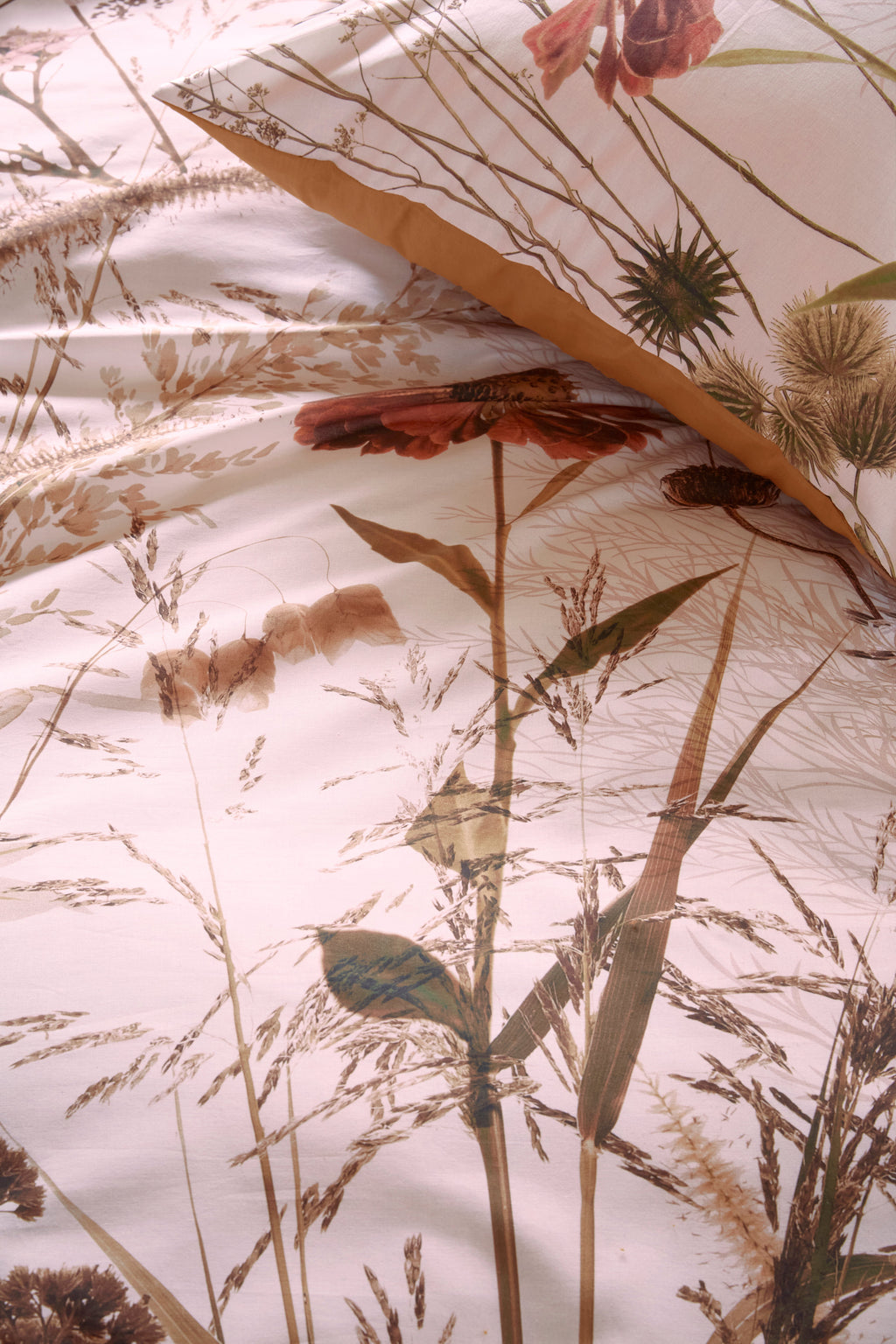 The Cely duvet cover by Beddinghouse adds summer warmth to cold winter days. Inspired by the beloved style of garden designer Piet Oudolf, this bang-on duvet cover print depicts grasses and wildflowers. From allium to yarrow, and helenium to thistles; can you spot them all? The captivating summery print gleams in warm, muted colours against a peachy background. The backside of the duvet cover is uni-dyed camel.