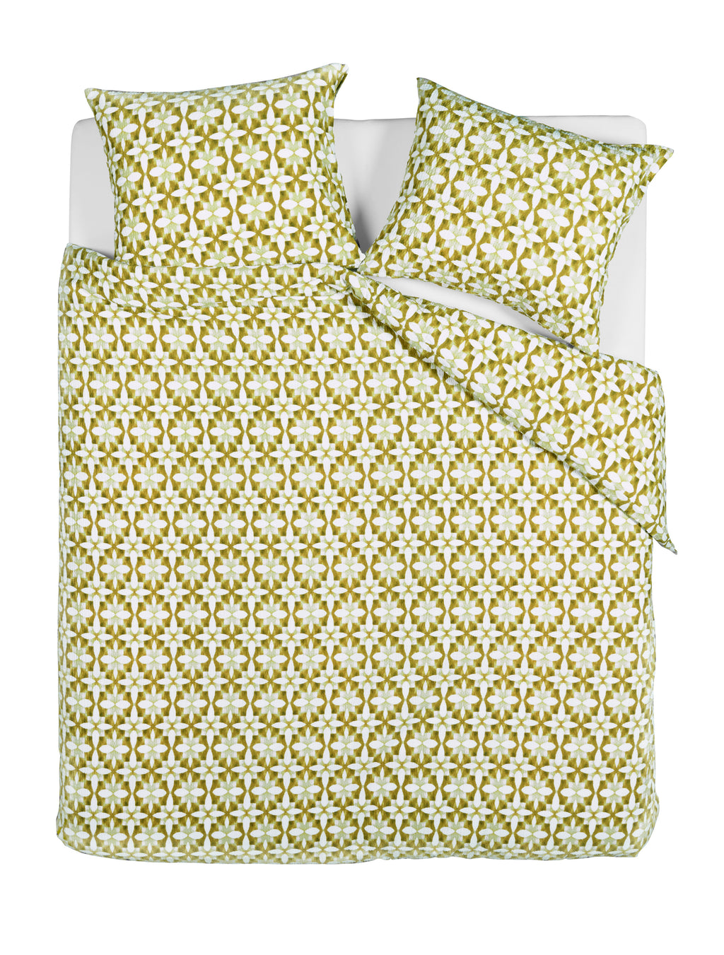 Looking for a contemporary and trendy quilt cover? Beddinghouse''s Mae quilt cover is the perfect choice. The all-over hand-painted tile pattern in fresh shades of green, from olive and light green to white, adds a stylish look to your bedroom. Made from seersucker fabric, a lightweight and slightly wrinkled material, it offers excellent breathability and moisture absorption. This ensures a pleasant night''s sleep, especially on hot days.