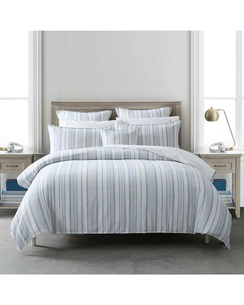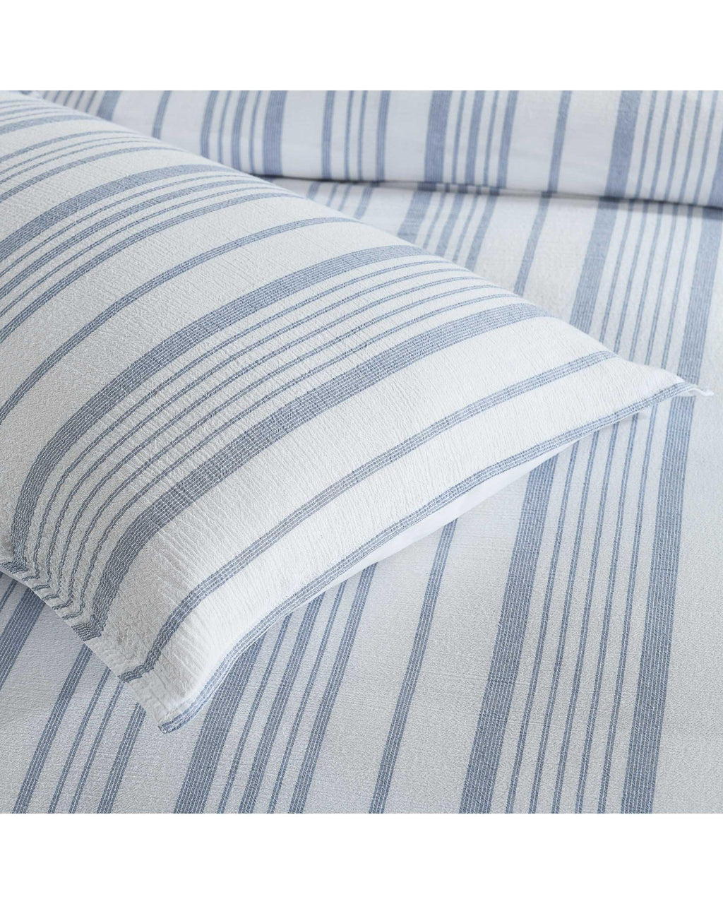 A flawless quilt cover for your boudoir. Classical. Simple. Relaxed. A beautifully textured cotton seer sucker fabric that is complemented by perfect provincial blue tones, creating an effortless look.