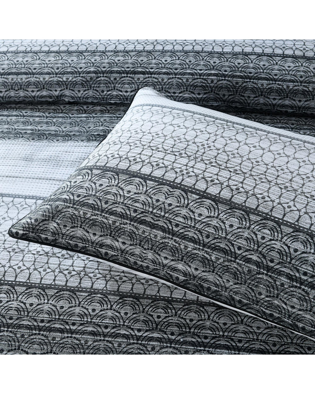 A classy, modern quilt cover. Harley incorporates on trend black, grey and white tones printed on cotton fabric and features a textured appearance. Take the look to a higher level with our black velvet European pillowcases and cushions.