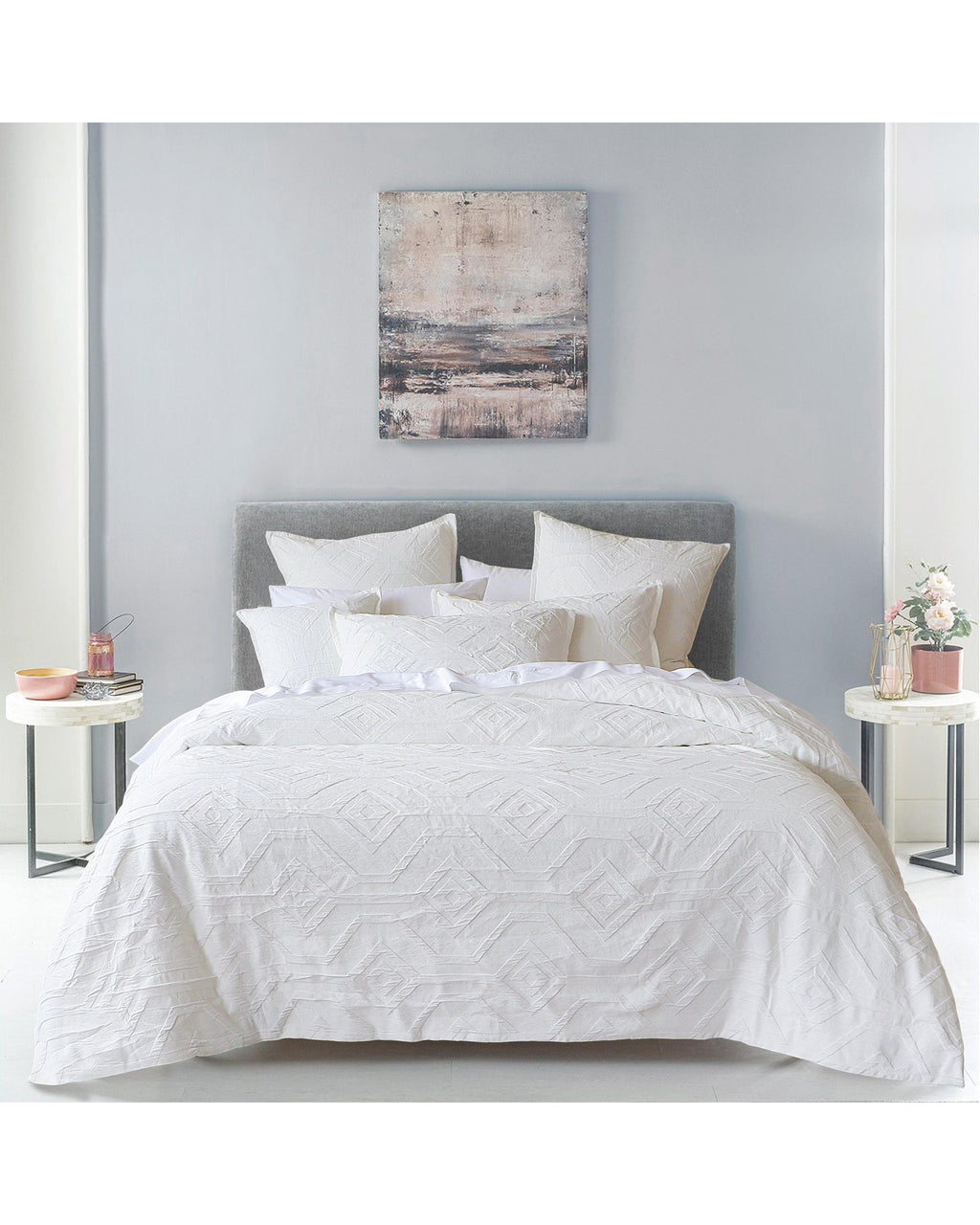 Dress up your bedroom with Kora. An easy-care jacquard fabric with a raised diamond design. An elegantly styled quilt cover that will add flair to your sanctuary. The quilt cover, european pillowcases and cushion all feature a tailored edge to complete the opulent look