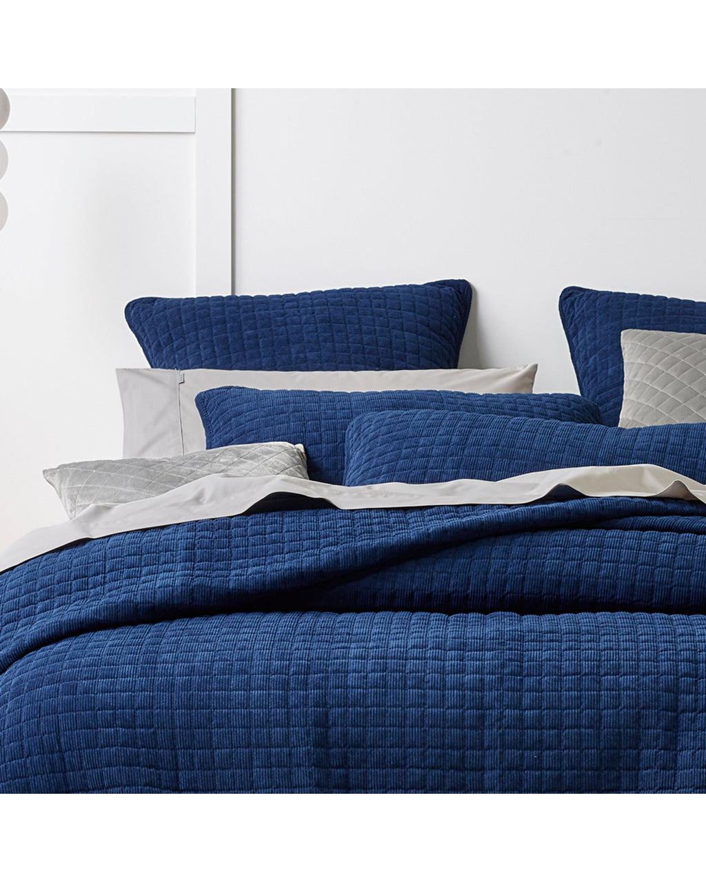 In a luxurious indigo colour, the Turin coverlet features a beautifully soft, corduroy fabric. The grid stitch quilting pattern is perfect for adding a touch of colour to your bedroom.