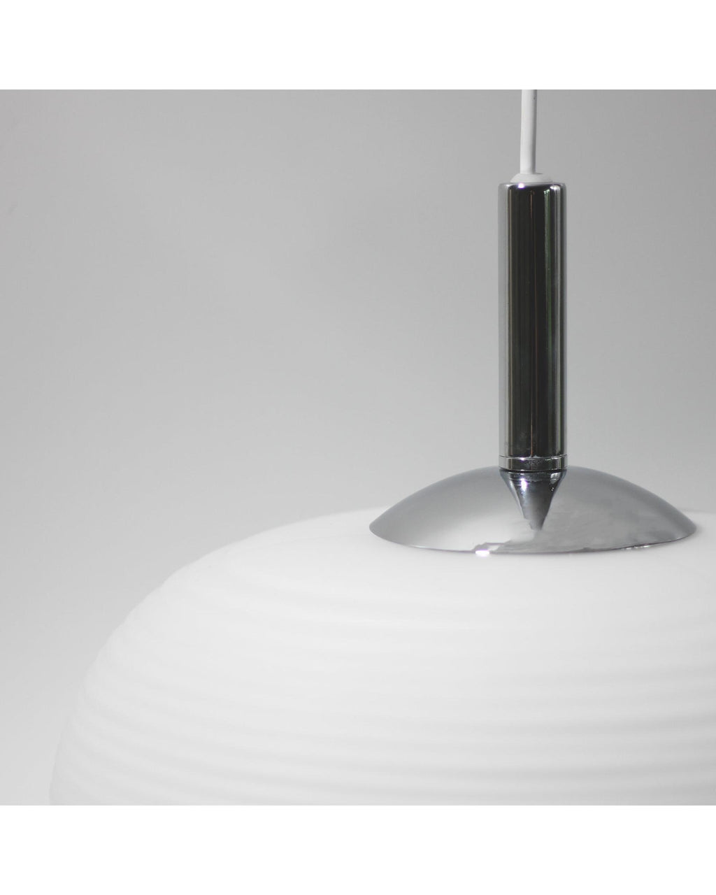 When illuminated, the frosted glass shade of the Celia Glass Pendant Light glows beautifully and produces a calming mood in the space it is installed. The shade also has an appealing ribbed design to add some texture, style and personality to the Celia Glass Pendant Light.