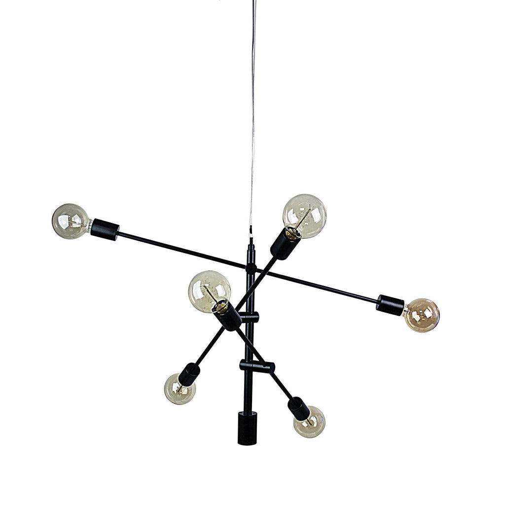Step outside the box with the CHELSEA geometric pendant. Three pivoting arms can be angled and adjusted to suit your room and your personality. Available in matt black, bright chrome or antique brass, the Chelsea looks great with decorative globes, either opal or exposed filament (as photographed). Suspended on a wire and a clear cord.