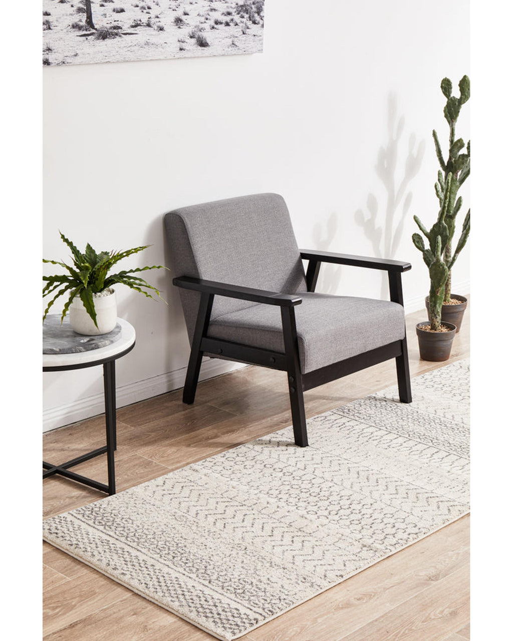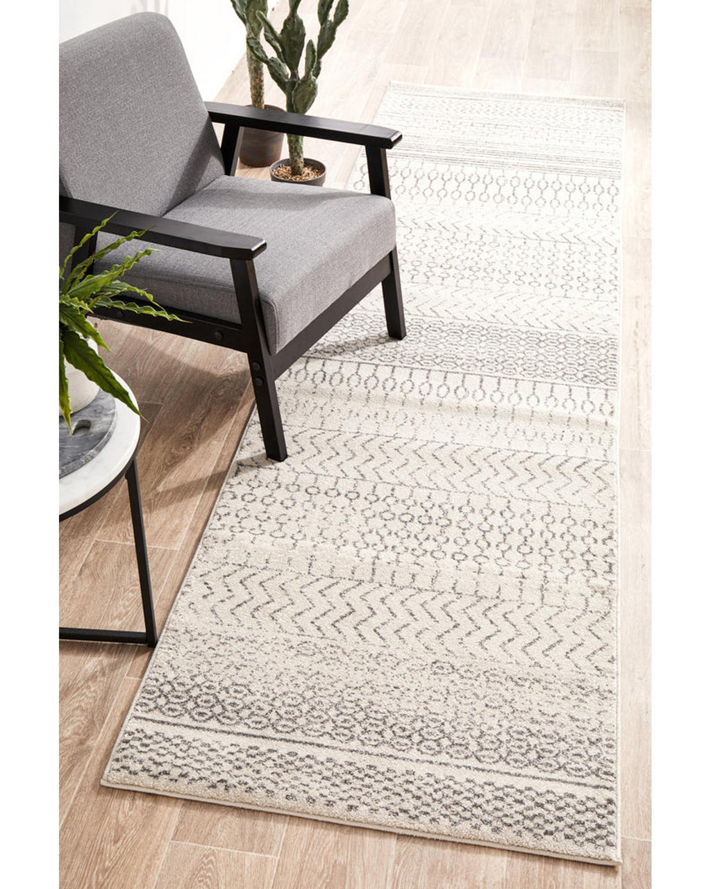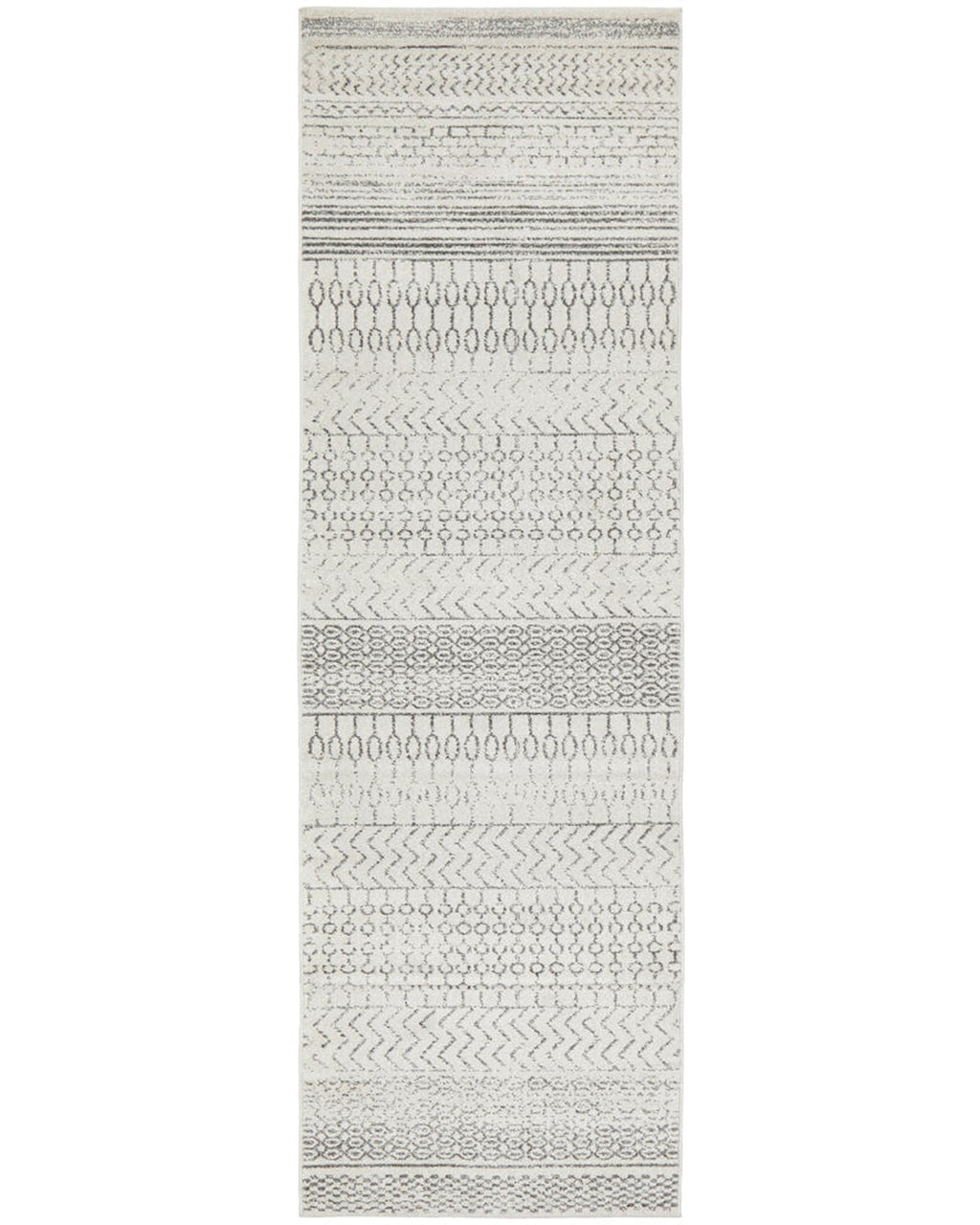 Perfectly on trend for tribal, this monochromatic palette and vintage design meet to create a rug with elegance and subtlety. Power loomed with a polypropylene pile, this rug is non-shed and easy care. These rugs offer style, versatility and are available in rectangles, rounds, and runners in a large variety of sizes.