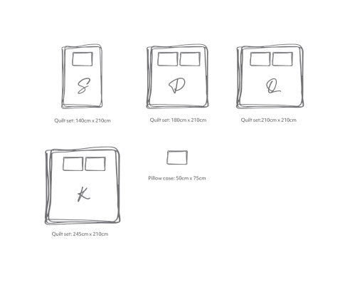 Single quilt cover: 140cm x 210cm