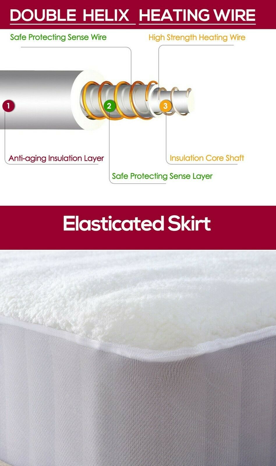 Enjoy a warm and good night’s sleep after a tiring day with the DreamZ Fitted Heated Blanket. This electric blanket comes with a 470GSM fleece top which provides extra warmth and luxurious sleeping comfort. Featuring a dual-layer heating system (single layer for single size) and a soft fleece underlay. This heated blanket is perfect for those chilly winter nights!