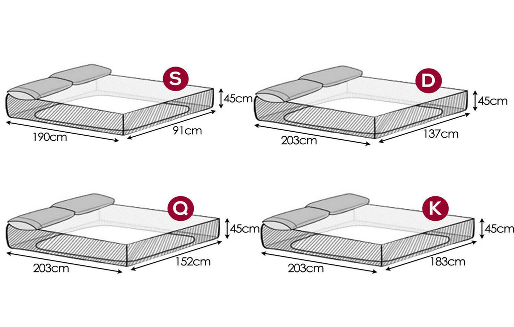 • Size:Queen 203(L)x152(W)x45(H)cm