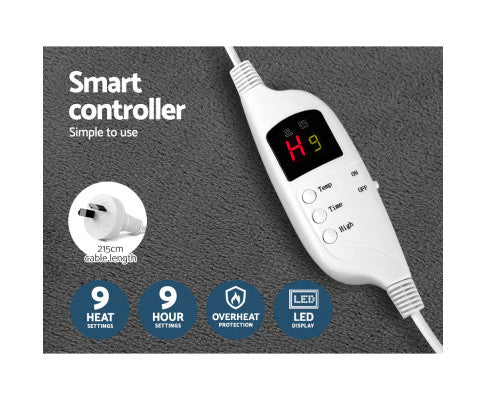 Get that warm and cosy feeling every day with a Giselle Bedding Electric Throw Rug. The double-sided throw rug is made from premium flannel and sherpa fabric, our electric throw rug is just the thing to help you cut down on costly heating bills while still enjoying the heat up-close. The throw rug has all the features of our electric blankets with up to 9 temperature settings, a 9-hour timer, overheat protection, automatic shut-off and a detachable controller with LED display so you can always be in control of the temperature. It is anti-dust mite and bacteria and is machine washable for a clean blanket time and time again. Keep your bedroom or living room cosy and comfortable with a warm and huggable Giselle Bedding Electric Throw Rug.