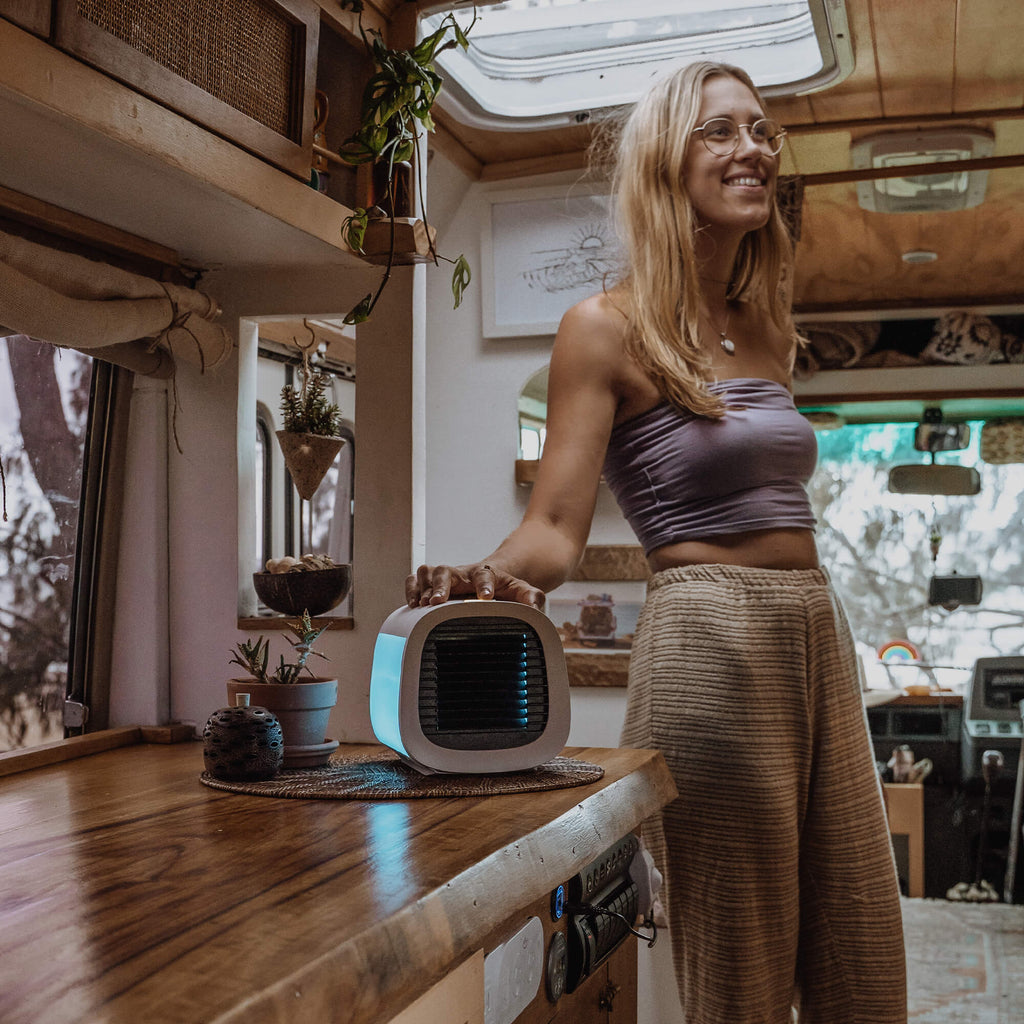 evaCHILL is a new personal evaporative air conditioner by Evapolar. Stylish and weightless design is combined with sophisticated functionality, creating a sense of lightness and purity.