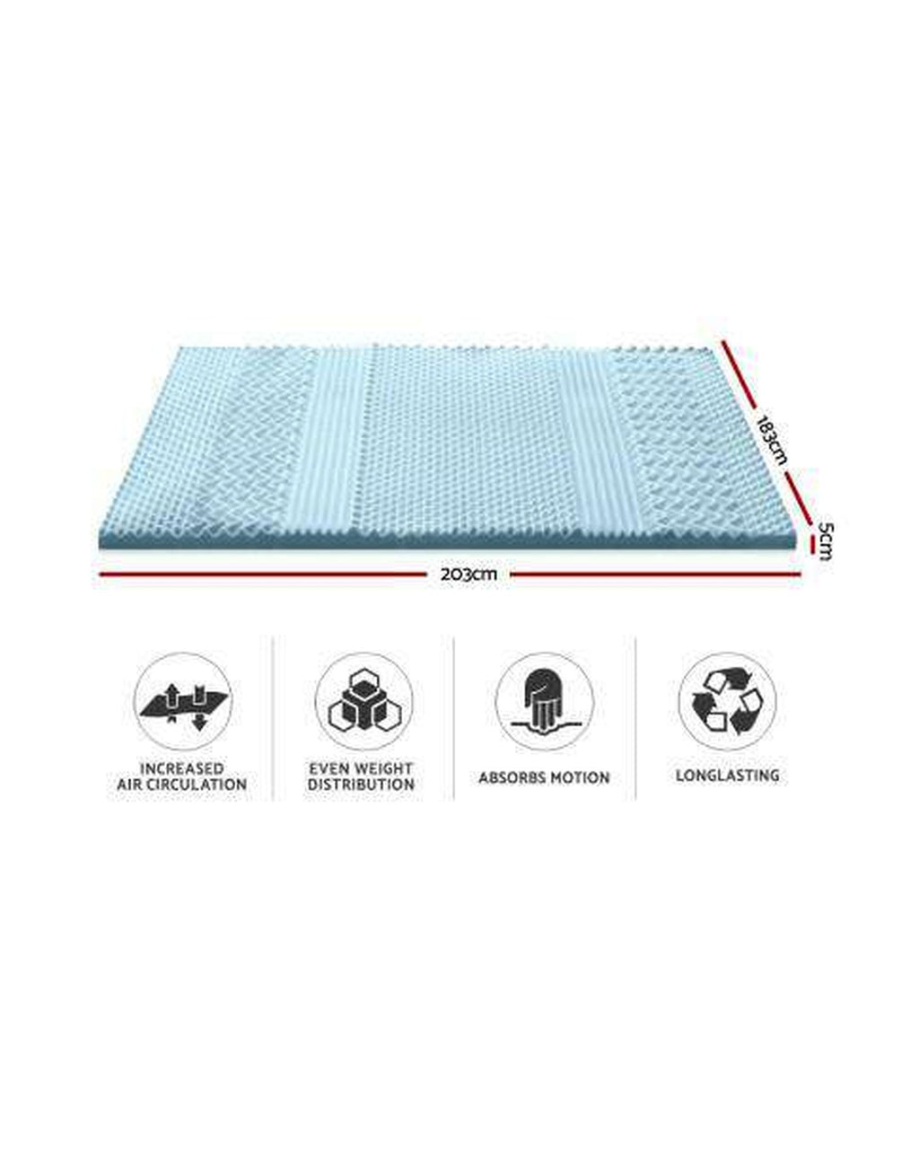 Experience enhanced comfort with a Giselle Bedding Memory Foam Mattress Topper. It features a 7-zone comfort design with an innovative open cell structure for better heat dissipation and yet feels warm at the right temperature. With a high-density 100% visco elastic foam filling, the topper provides a lofty cushion of softness. The highly breathable 5cm thick topper is also designed to shape according to the contours of your body for an even weight distribution with over 1000 supporting points. Not least, the topper is housed in a removable and washable zipped jacquard knitting fabric cover for a premium look and appearance. Ready to be used right out of the package, simply place the topper on your mattress and it will provide you with a better sleeping surface and pure comfort throughout the night.
