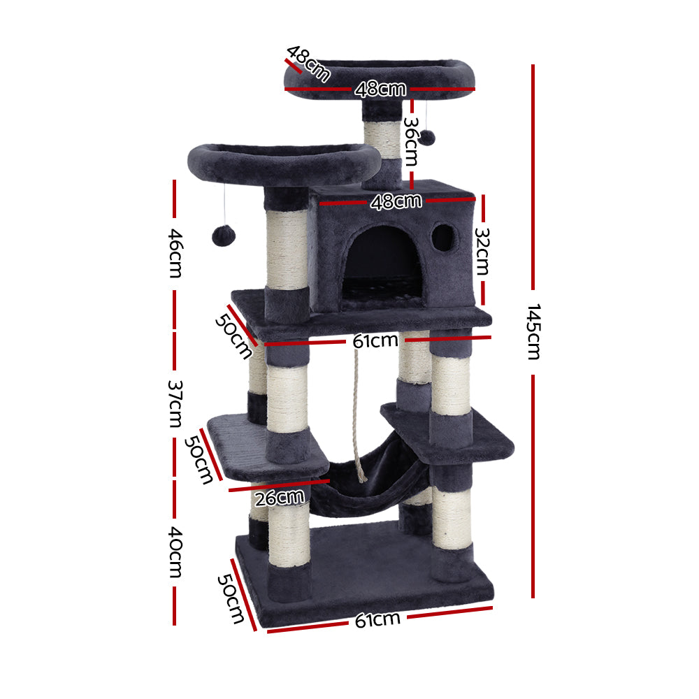 It is an absolutely feline wonderland with our i.Pet Cosmo Cat Tree! Built to satisfy the natural instincts of your precious pet, our cat tree includes a host of nooks and crannies for tom and tabby to have hours of fun scratching, hunting, climbing, jumping, hopping or simply lounging around. Even Garfield would be proud of this tree. Plus, with its sisal-covered scratching posts, you can rest assured that your furniture will stay cat-free for a very long time. Best of all, the sturdy construction with extra-thick 12cm posts and 4cm thick base, much thicker than the standard 6cm thick posts and 2cm thick base of most cat trees on the market, ensures that the tree remains a durable cat haven long into the future with total peace of mind for you. This cat tree is certainly an essential furniture for any cat owner and is just right for your cats energetic exploration. Can we hear a meow to that?
