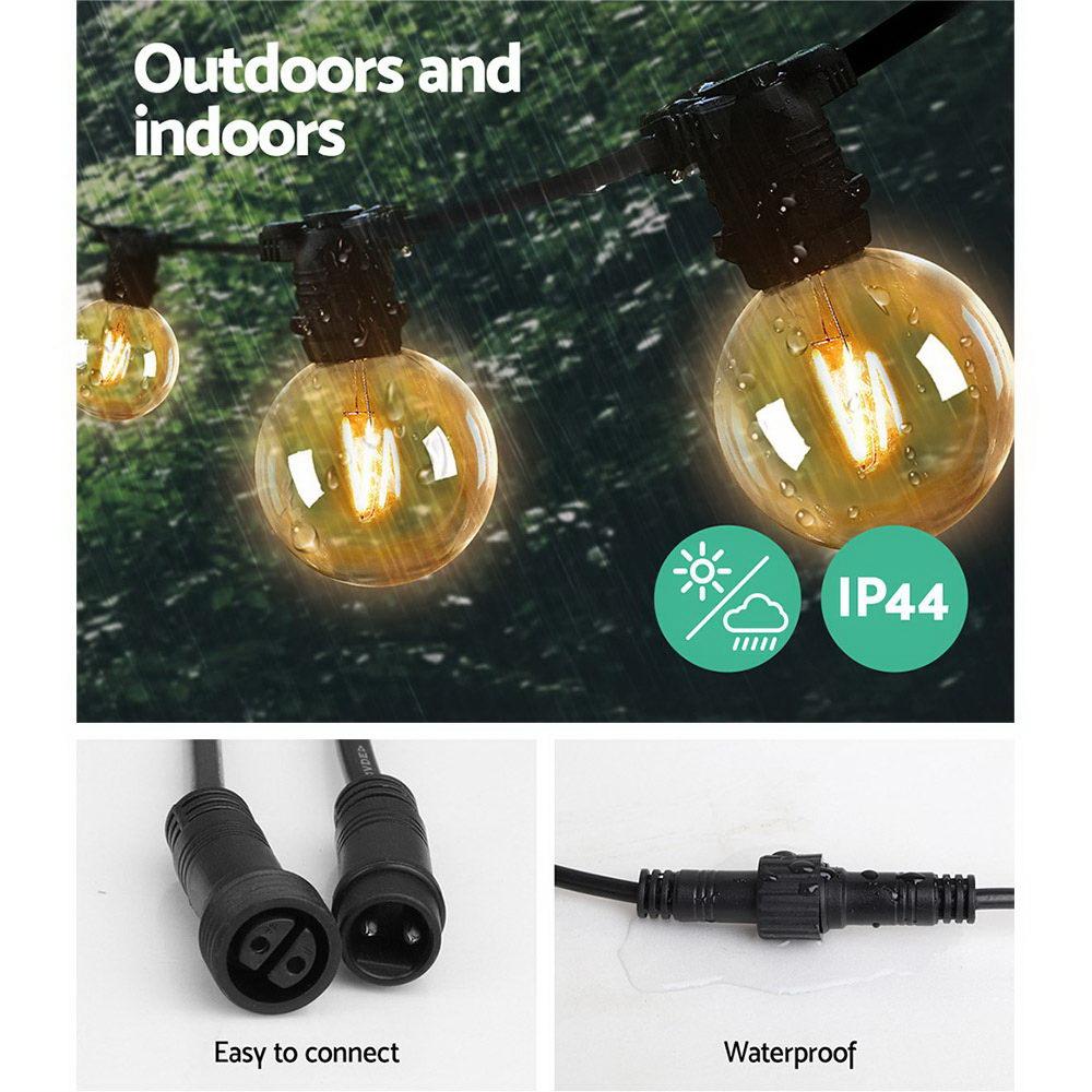 Our Jingle Jollys Festoon String Lights are great not only for wedding and birthday parties or special events, but also for creating a warm, inviting ambience with its bright and mellow glow. Suitable for both indoor and outdoor use, its IP44 rating means that it can be used in the rain and all weather conditions. Each bulb draws a very low voltage and is placed 90cm equally apart from each other throughout its 41m length for an even distribution of illumination and brightness. Not least, the each bulb has a 20,000 hours lifespan so that you can get to use the string lights for quite a while.