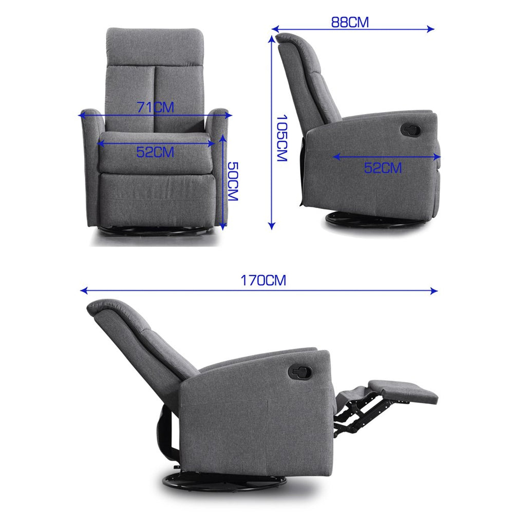 Come home from work and just want to chill first? Our sofa recliner would be your best choice! Just sit back and relax, watching TV or listening to quiet music. You can enjoy your personal space whenever you want. Featuring adjustable reclining positions, you can choose to sit back or lay flat for resting. For your extra comfort, it is made with thick cushion that ensure that you will enjoy the ultimate goodness in this recliner. Our sofa recliner can be 360°swivel. It's just like bar stools or office chairs, while is much comfortable than both. Fully adjustable backrest and footrest ensure maximum relaxation. What's more, the sofa recliner also have independent springs at seating area that provide different level of support. Just get it and have something to look forward to when you back home!