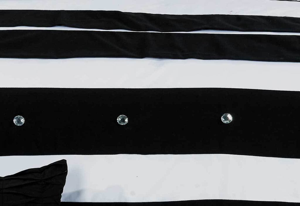 The Rezzo Black and White duvet cover set makes a strong visual impact with its strong black and white contrast offset with clever striped pintucking. Along the end of your bed you will find the embroidered crystals that convey a statement of luxury and comfort. This duvet cover is perfect for the buyer looking to make their bedroom a luxurious place.
