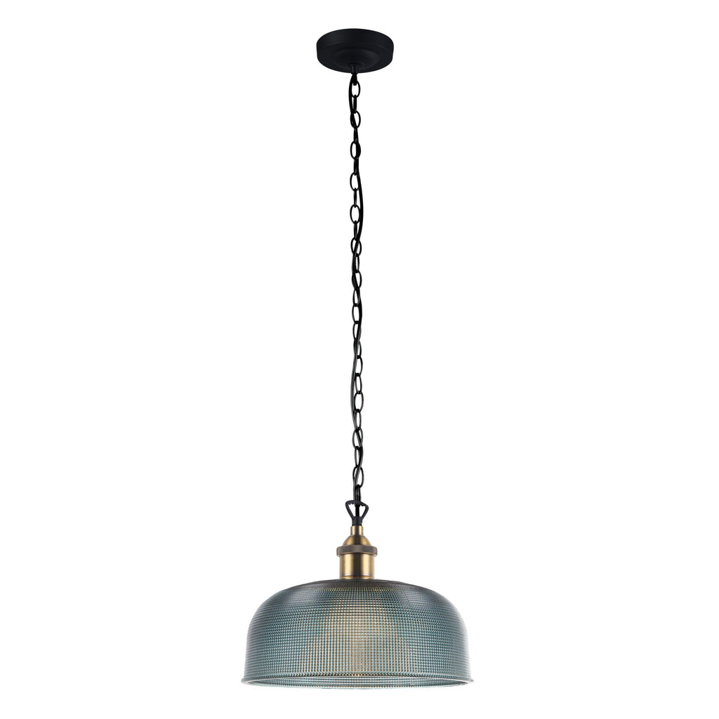 MAISON.27 halophane glass shaded pendant on a black and antique brass chain suspension. Ideal compliment to our Industrial Vintage lighting range. Lovely solid glass, also available as a 150mm shade.