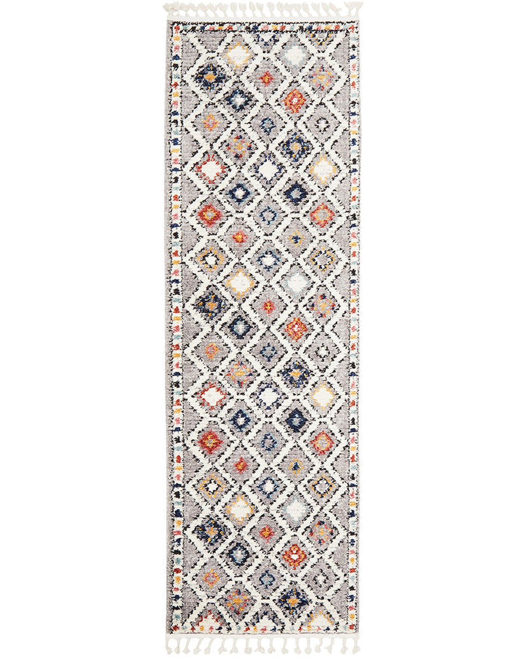 Interlocking diamond motif injected in an excellent piece of rug with grey field creates a vibrant tribal decor statement to your favorite room or location. This soft, 20 mm pile is an elegant piece paying homage to the rich heritage of Morocco and sprinkling a bohemian artistic inspiration to any setting. Choose from this magnificent range, inviting and stylish, these rugs offer a terrific modern look to any decor.