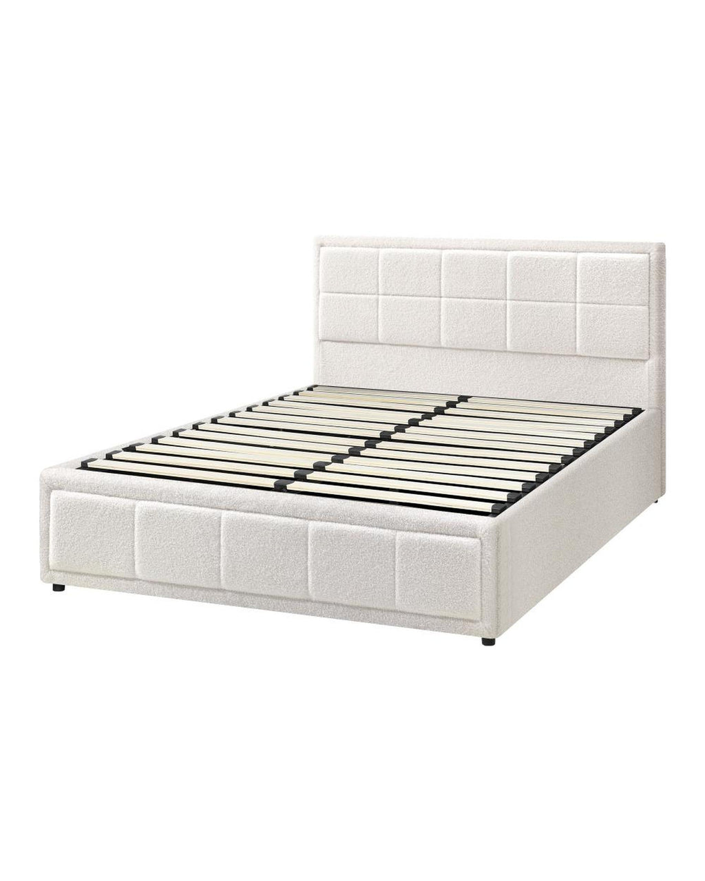 Featuring a well-padded 10-square embossed bedhead design, the Oikiture Boss Bed Frame exudes bespoke elegance and adds a luxurious presence to any bedroom decor. The sophistication factor is even more prominent with the chic white Boucle fabric upholstery that covers the bed frame from head to end. Soft to the touch that lends a cosy and intimate aura to accompany your calm and restful sleep. But there's more to the bed frame than just an attractive appearance. The finishing is meticulous with exacting workmanship all round. Inside, the thick 13mm wooded reinforced slats provide end-to-end support for the mattress while the sturdy rubber wood legs ensure that the bed frame stands up to durable use time and again. Plus, the bed frame is definitely more than meets the eye. With its assisted hydraulic gas lift hinges, the bed can be easily brought up to reveal generous storage space for bedding and other assorted bedroom essentials. Better still, setting up the bed frame is hassle-free where the entire bed frame assembly can be completed in less than 30 minutes. The Oikiture Boss Bed Frame is compatible for use with most Australian-sized mattresses and is available in King Single, Double, Queen and King sizes.