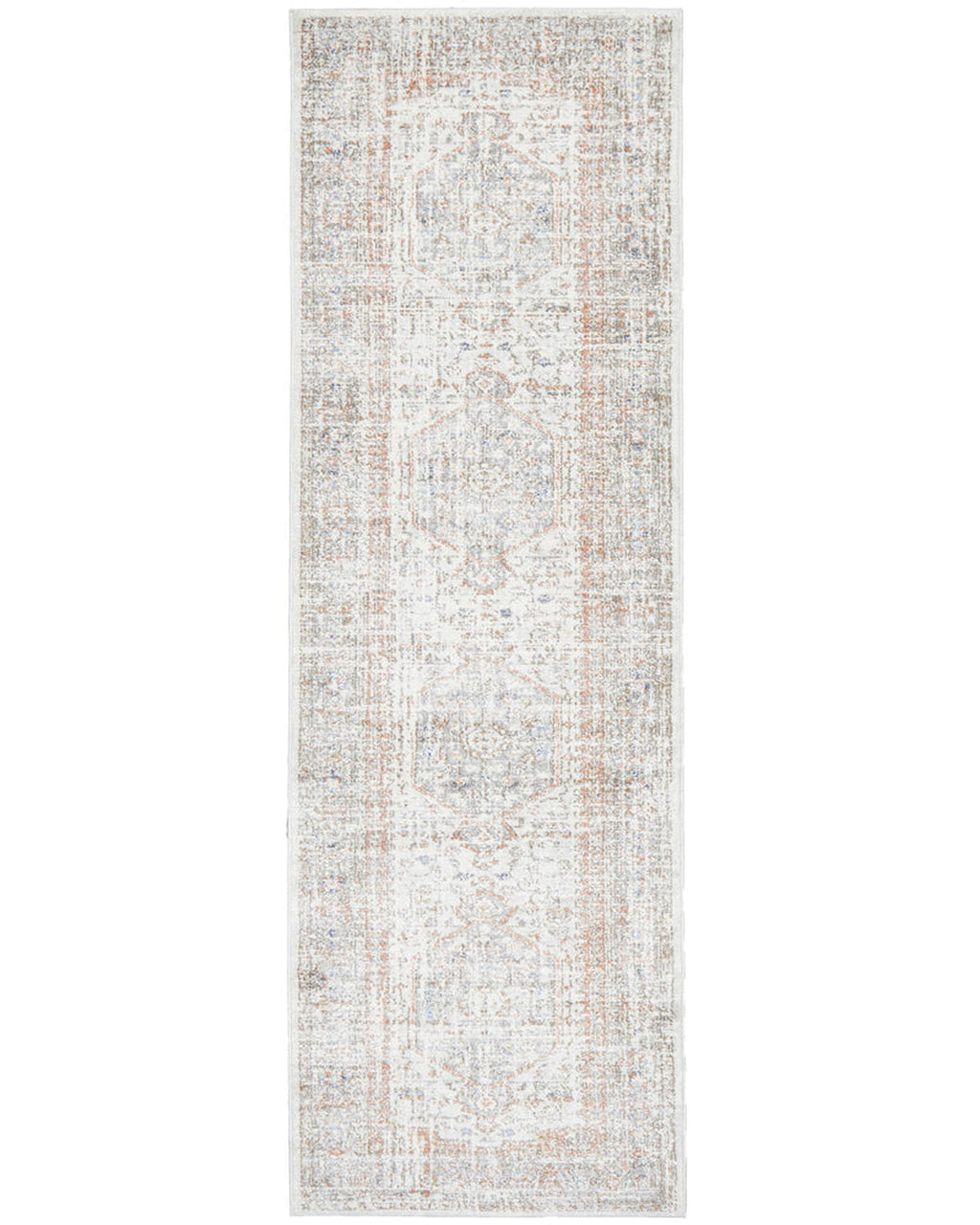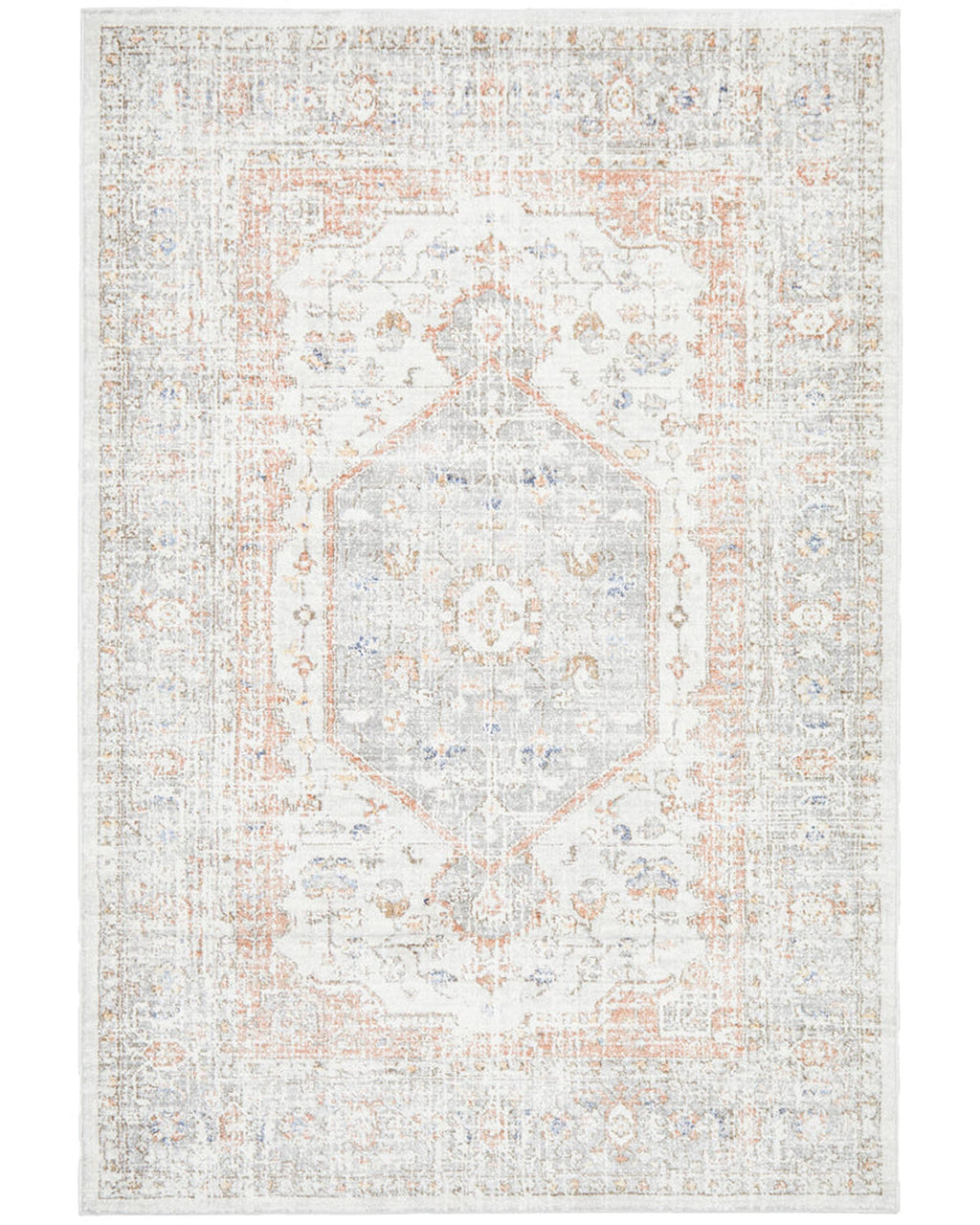 Soft blue, warm peach and silver flow through a stonewashed look to create the most beautiful transitional design. Power loomed with a polypropylene pile, this rug is non-shed and easy care. These rugs offer style, versatility and are available in rectangles, rounds, and runners in a large variety of sizes.
