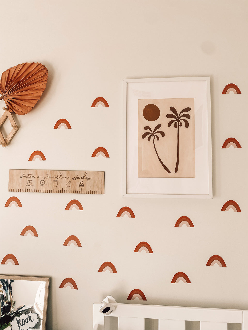 Our wall decals are designed by illustrator Mads Francis and printed in Australia using eco-friendly, non-toxic materials so you can place them in your kid's room without worry. We print on a non-vinyl, self-adhesive, super easy to apply, and completely removable material, so whether you rent or own, you can decorate without the stress of causing any damage to your precious walls!