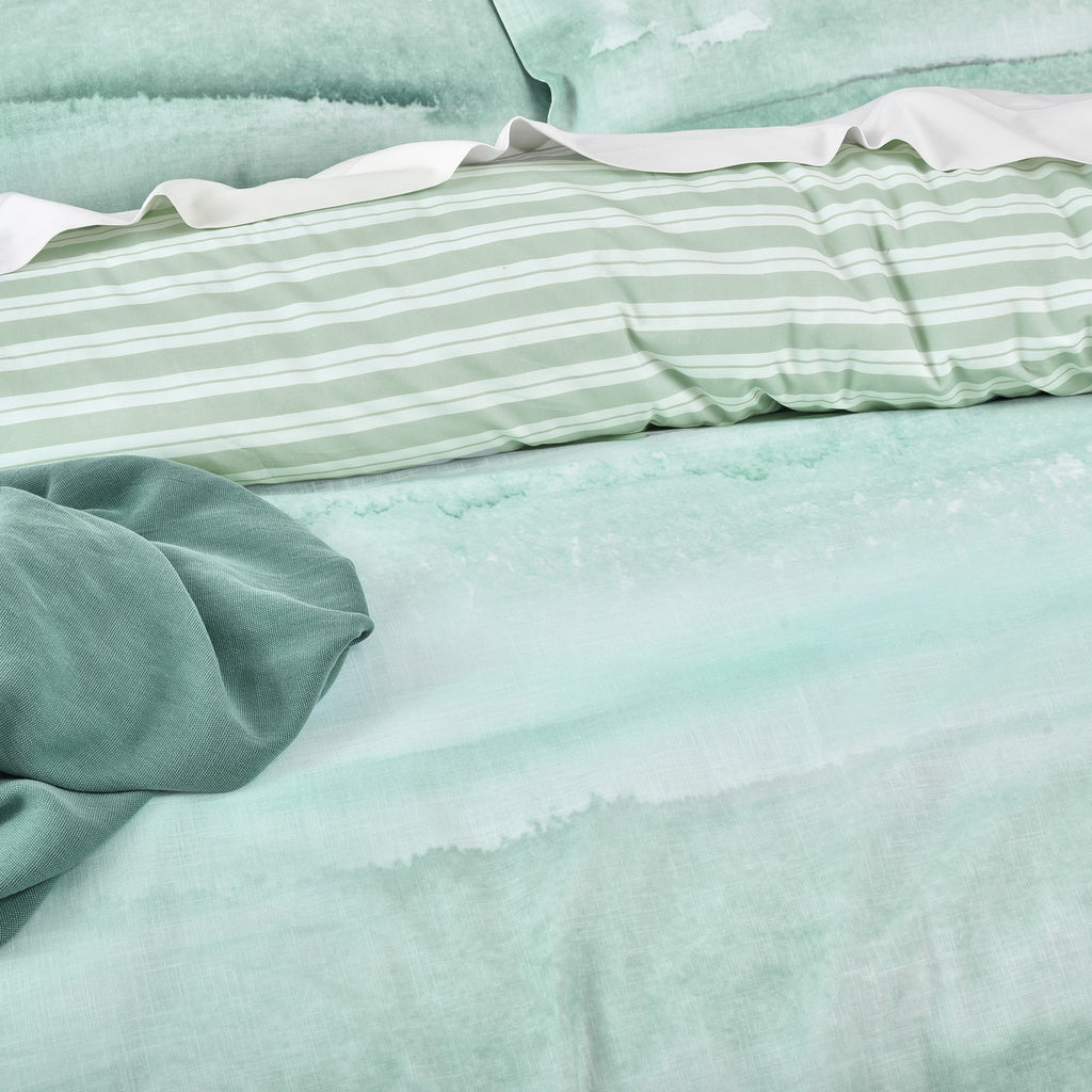 Add a burst of artistic elegance to your bedroom with our Terrain quilt cover, featuring a captivating blend of design, textures, & colours. A tranquil landscape of calming blues & soft neutrals, reminiscent of serene seascapes. Add on reversible Stipe pattern makes this cover versatile design effortlessly transitions through the seasons, offering a peaceful and timeless aesthetic. Adding on European pillowcase, makes this whole setting more desirable.