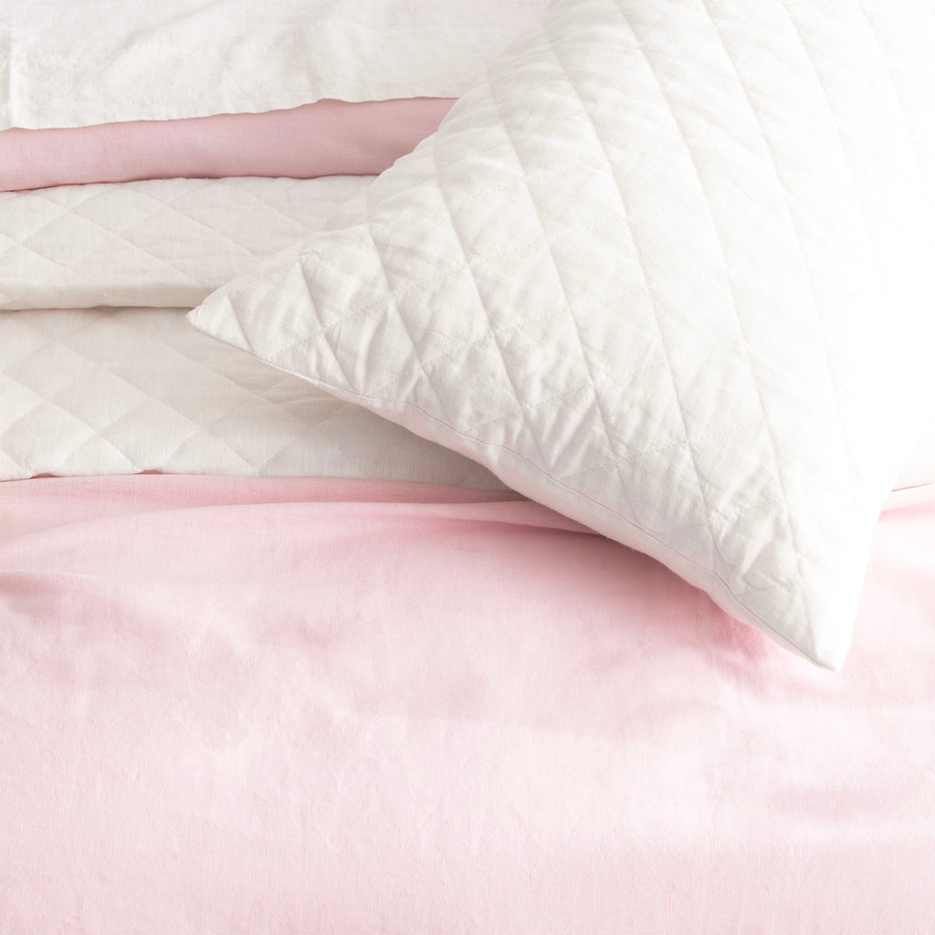 Our Cavallo linen bed coverlet set are pre-washed giving it a beautiful softness and relaxed, lived-in look. It's like sleeping on a cloud, with all the airy goodness of linen but softer than ever thanks to our Cavallo French linen collection. Woven using the finest French flax, this natural-fiber fabric is prized for its durability, breathability, and luxury. Detailed with Diamond stitching complimented with flange running around. Oekotex certified and proudly made in Green.