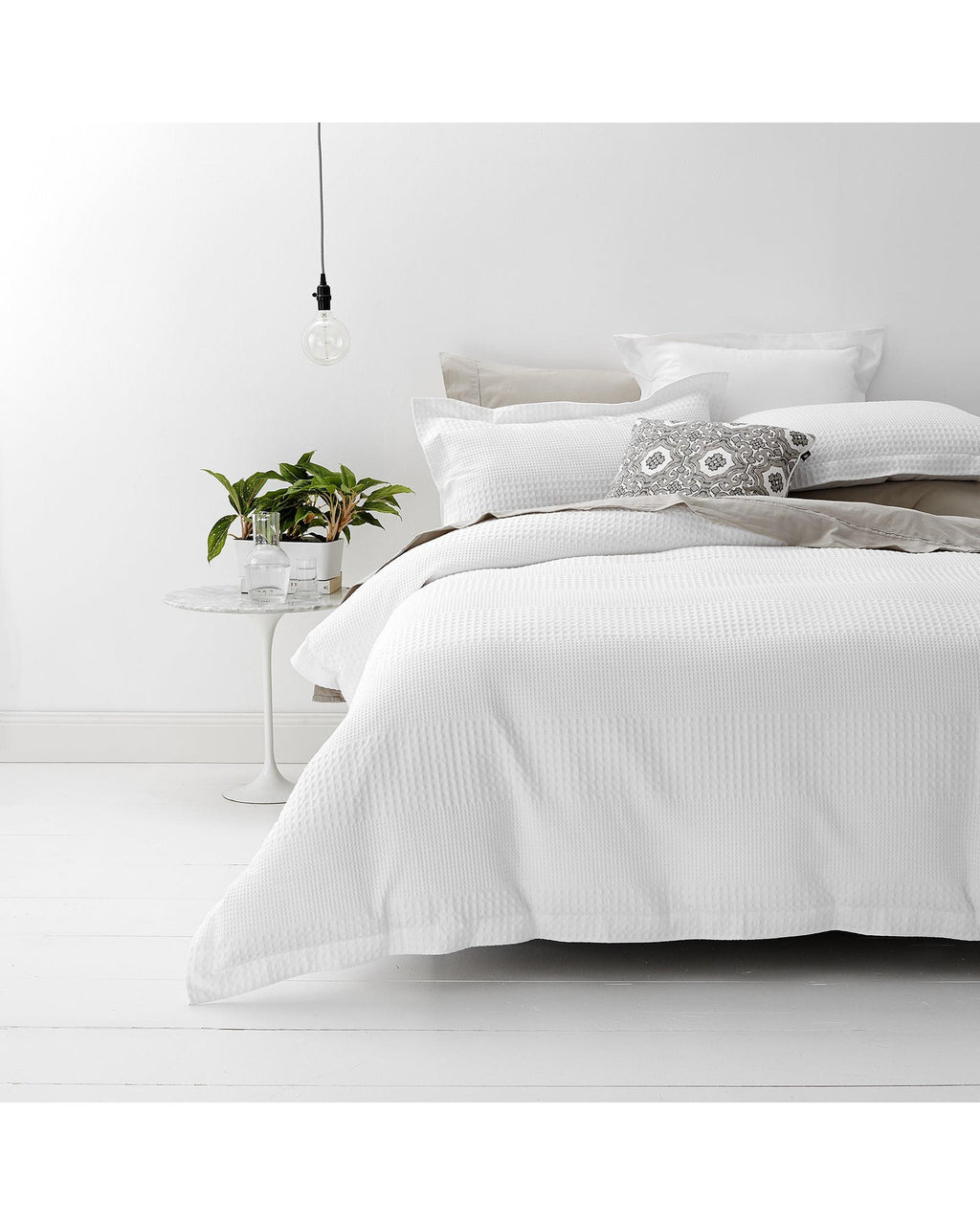 Our most popular simple and elegant, a classic waffle weave never goes out of fashion. Elevate this textural jacquard, modern look by styling with the range of colors from the premium elegance waffle collection. Finished with a crisp 250 thread count cotton percale reverse and a smart, tailored edges on both the quilt covers and pillowcases, this timeless premium collection is the perfect choice for any home. Fully machine washable and all year-round product.