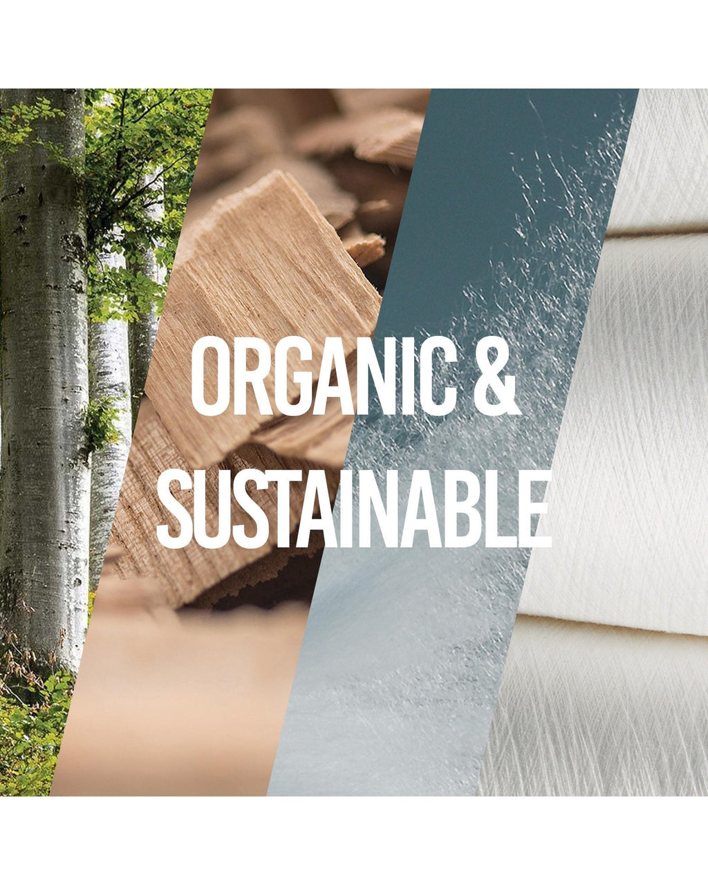 This pillow features a Tencel and pure polyester blend. Tencel is a sustainable fibre that is naturally hypoallergenic and provides moisture wicking properties, absorbing moisture away from the body along with lightweight warmth.