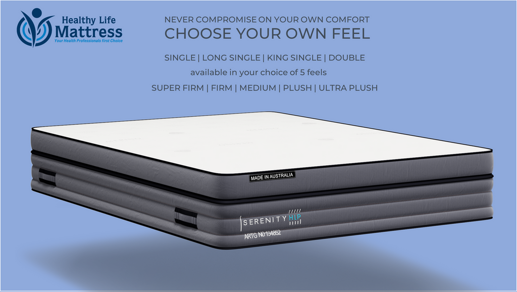 The Serenity mattress by Healthy Life provides 6 feel options, Super Firm, Firm, Medium, Plush and Ultra Plush. In Queen & King sizes you can choose split feels, so you and your partner can have the comfort level you want to ensure a better sleep for everyone.