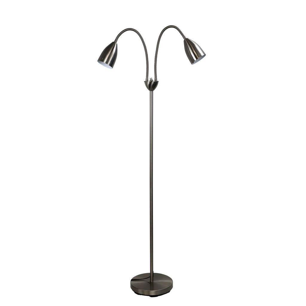 STAN is a mid-century styled twin floor lamp featuring flexible goose-neck arms with metal shades. STAN’s individual switches are located on the central hub, for easy access to operate each light seperately. Shades have a white painted inner, providing better light reflection.