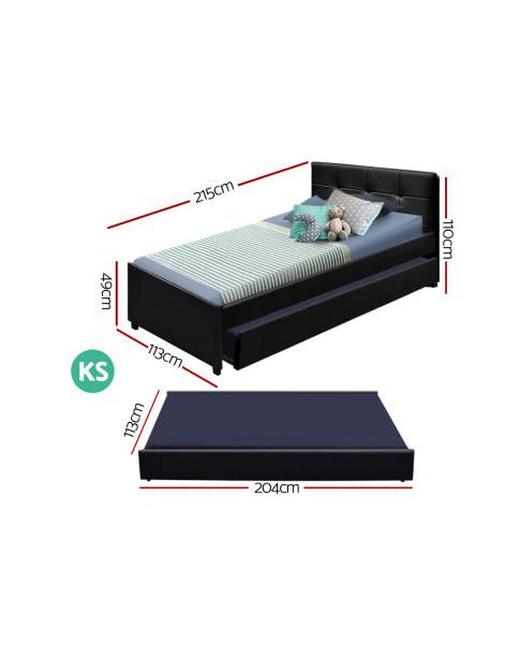 Designed to fit standard Australian king-single-size mattresses effortlessly, the trundle bed frame is suitable for both adult and children to use.