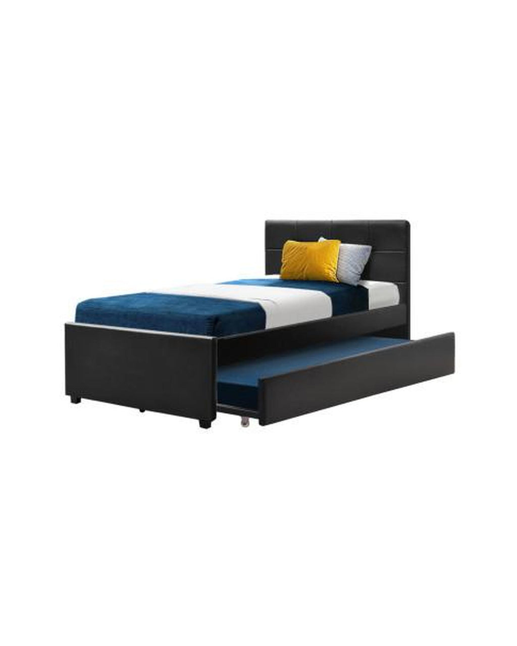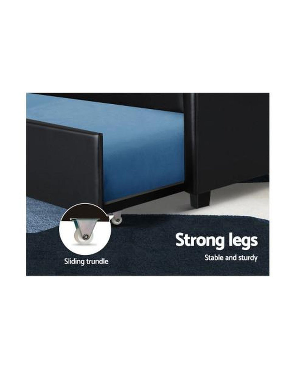 Well, not if you have our Fripp Trundle Bed Frame. When not in use, the spare bed is stored under the normal bed. Come the time to use it, just slide it out from either side and the extra bed is ready to welcome your weary guest. Both bed frames are made of wood with quality arched plywood slats and heavy-duty metal connectors. Plus, the integrated assembly is beautifully crafted with smooth edges and upholstered in premium black PVC leather to easily match any home décor. The bedhead also features a tufted design for timeless appeal.
