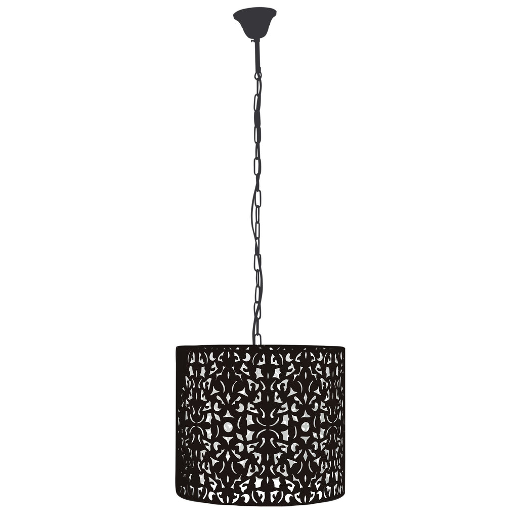 Our popular Vicky range is stunning when lit, as the cut-out design in the metal shade is reflected onto the ceiling or wall. This Vicky pendant features a matt black painted metal shade, suspended on a chain with a matching canopy.