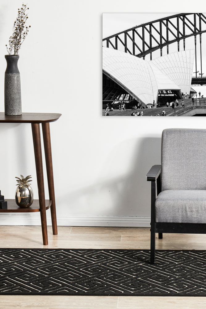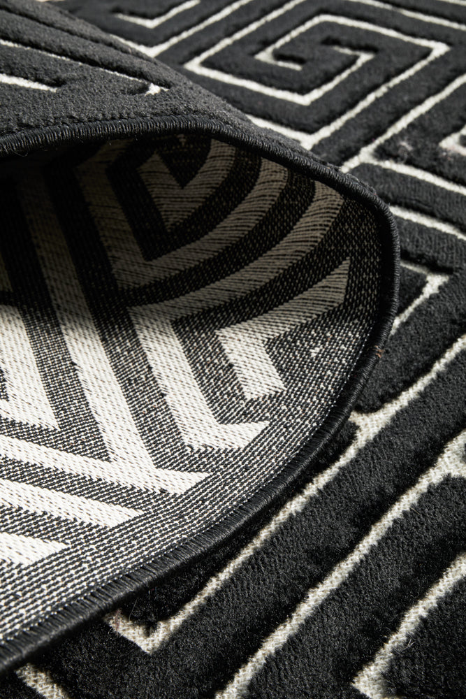 A tessellation that is an ode to art deco, this design is pure luxury. Soft black chenille pile rises out of a neutral background, a dual/cut pile that creates the ultimate texture. Power loomed to perfection with hardwearing polypropylene and chenille for the ultimate hand feel and robust finish.